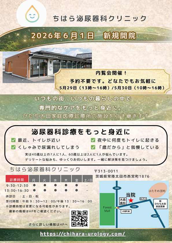 ちはら泌尿器科クリニック 内覧会 を開催いたします。